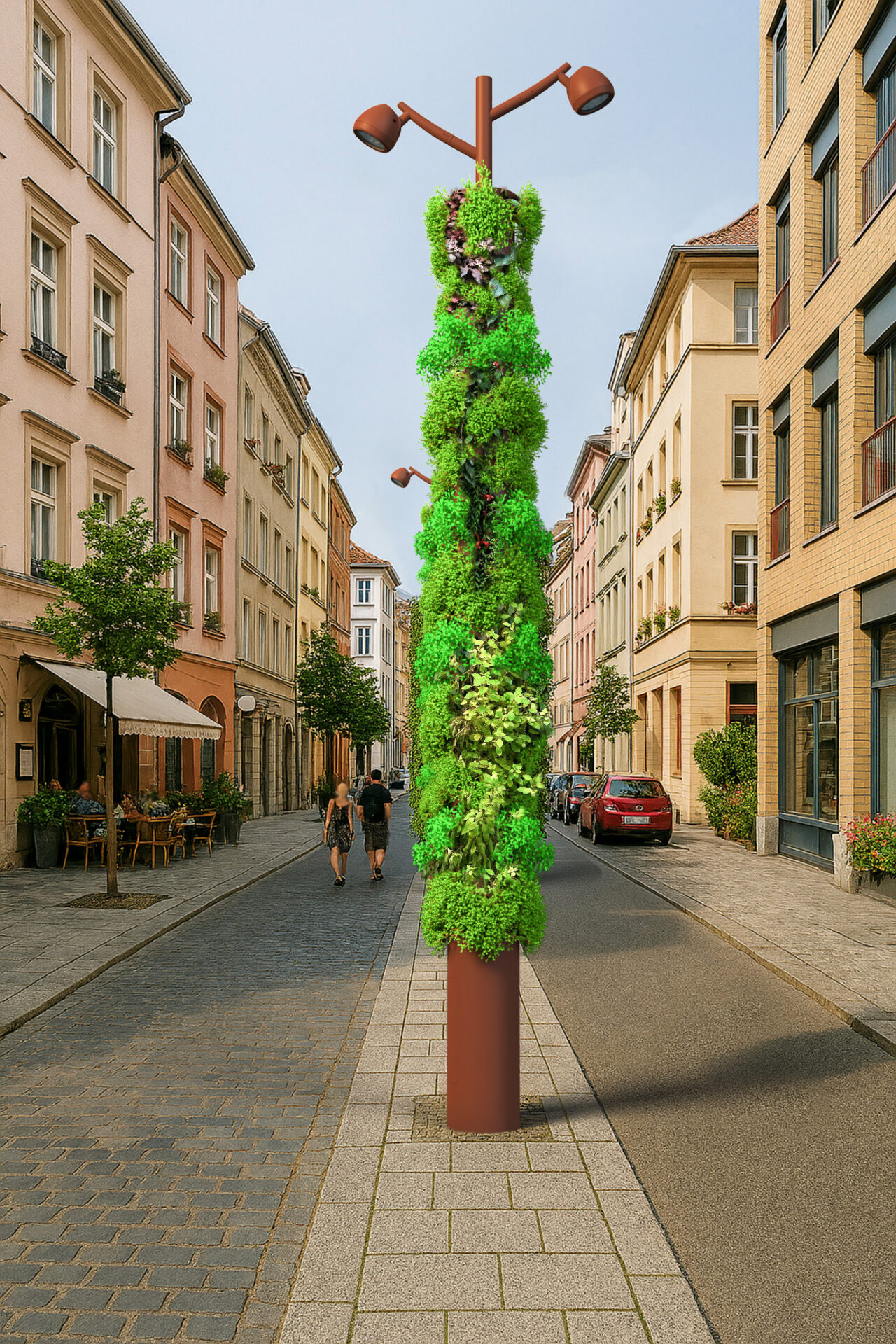 Chaque colonne associe lumière, biodiversité et services urbains, avec une emprise au sol minimale et un impact environnemental mesurable — jusqu’à 50 kg de CO₂ absorbés par an .